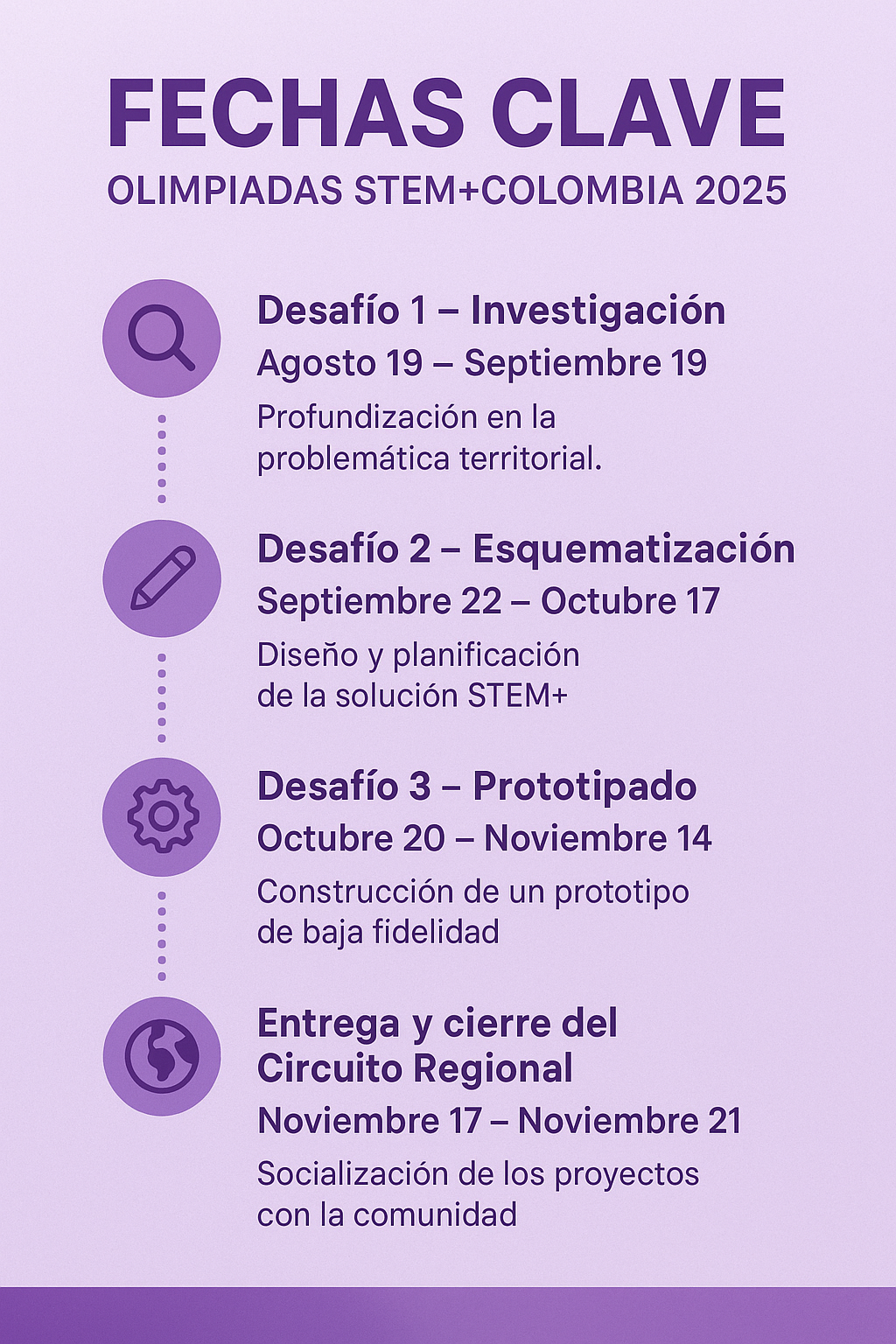 En esta nueva fase, los equipos, sin importar su nivel o categoría, deberán avanzar en la materialización conceptual y técnica de un prototipo de baja fidelidad, recorriendo tres desafíos clave: investigación, esquematización y prototipado.